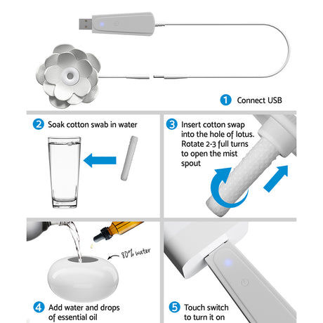 Devanti Aromatherapy Diffuser Aroma Ceramic Essential Oils Air Humidifier Lotus