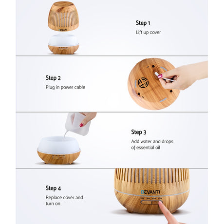 Devanti 4-In-1 Aroma Diffuser Aromatherapy Humidifier Essential Oil 500ml