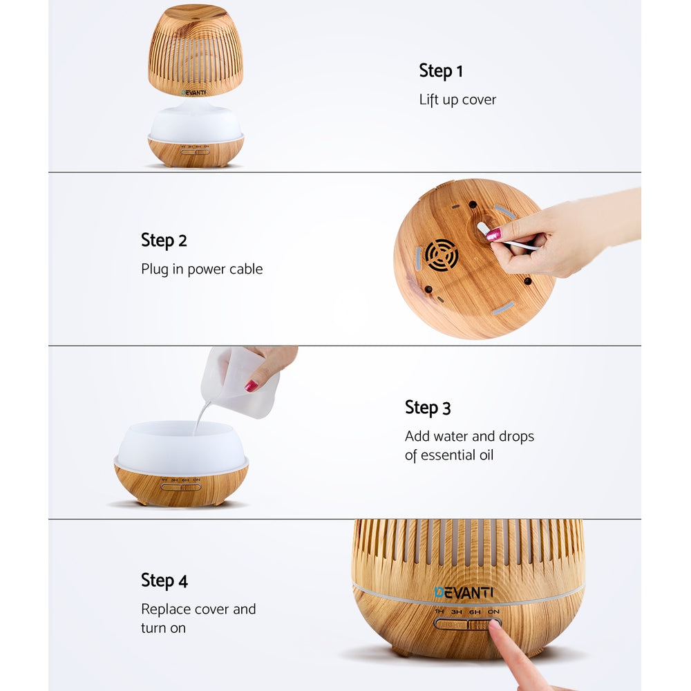 Devanti Aromatherapy Diffuser Aroma Essential Oils Air Humidifier LED Light 400ml