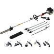 The ultimate gardening machine is finally here. Featuring no less than seven different gardening tools and attachments, the Giantz Multi-Tool Pole Chainsaw is a mechanical marvel that makes light work of even the most challenging garden maintenance tasks. The latest in the Giantz 62cc Pro-Series, the Multi-Tool Pole Chainsaw is powerful and efficient and designed to cut, trim and sculpt with ease. It comprises a host of desirable features such as a super responsive motor, in-built anti-vibration mechanism, auto chain lubricator, adjustable chain oil feed and easy start system. Included in this mega gardening machine are three extension poles to bring the reach up to 5.6m*. 26mm premium anodized commercial alloy is used for the shafts and poles and the commercial-grade quick-connect couplings are equipped with dual ball-bearing floating centres to make operating the tools smooth and easy. Genuine commercial spline fastening also ensure maximum stability when using the extensions. It even comes loaded with a bonus accessory kit, including gloves, earmuffs, glasses, a mini toolkit, a shoulder strap, spare chain, a spare spark plug and fuel mixer. You'll have everything you need to get started safely and right away. Have you been putting off those difficult gardening tasks? Hesitate no more. Lay your hands on some serious tools and get your garden into tip-top shape with the Giantz Multi-tool Pole Chainsaw.