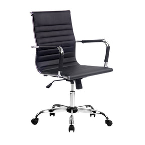 Bring a touch of contemporary living to your home or office interior with our Artiss office chair. Full of iconic styling, the office chair is absolutely sleek and elegant in every profile. More so with its faux leather upholstery that offers sophistication and class. Better still, the seat is rotatable 360 degrees to face any direction with ease. It also comes with both height and tilt adjustment to allow you to be seated at your most comfortable position and posture. Thoughtful touches such as a chrome-finished rack at the back of the chair allows for hanging of ties, scarfs and other fashion accessories. Not least, the similar chrome adorned base has five wheel castors for easy movement.