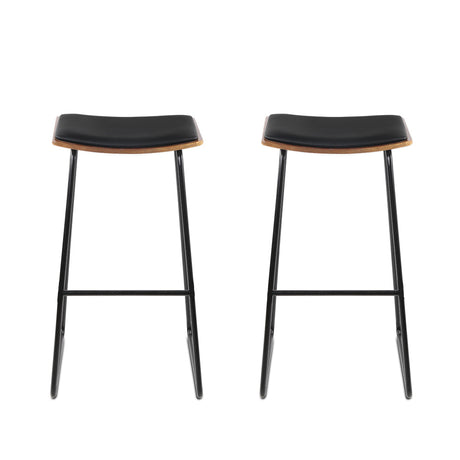 Artiss Set of 2 Backless PU Leather Bar Stools - Black and Wood