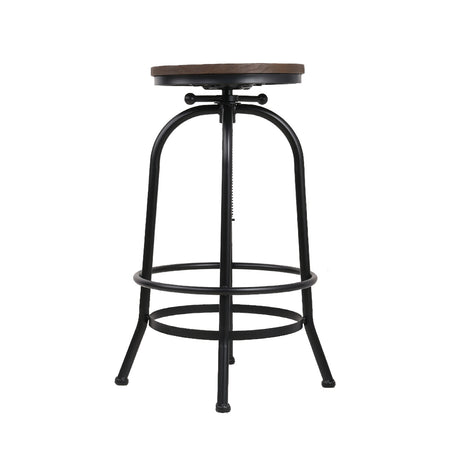 Artiss Bar Stool Industrial Round Seat Wood Metal - Black and Brown