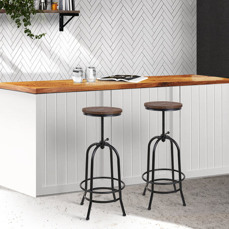 Artiss Set of 2 Bar Stool Industrial Round Seat Wood Metal - Black and Brown