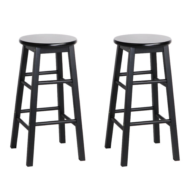 Artiss Set of 2 Beech Wood Backless Bar Stools - Black