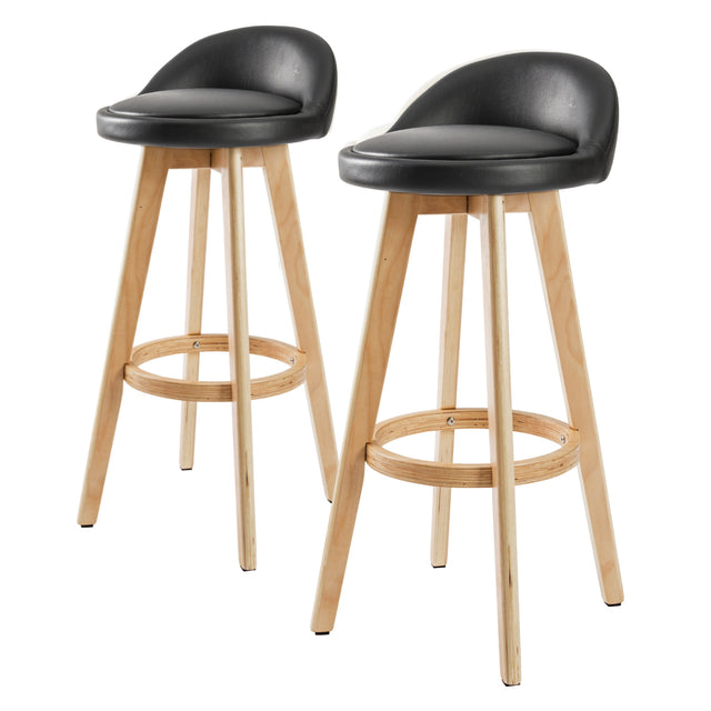La Bella 2 Set Wooden Bar Stool 72cm Leila Leather Dining Chairs Kitchen - Black