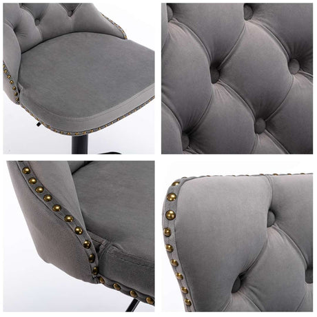 2x Height Adjustable Swivel Bar Stool Velvet Nailhead Barstool with Footrest
