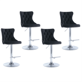 4x Height Adjustable Swivel Bar Stool Velvet Studs Barstool with Footrest and Chromed Base- Black