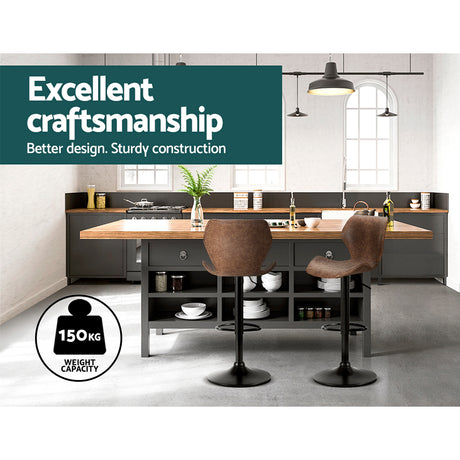 Artiss Set of 2 Bar Stools Kitchen Stool Chairs Metal Barstool Swivel Brown Frawley