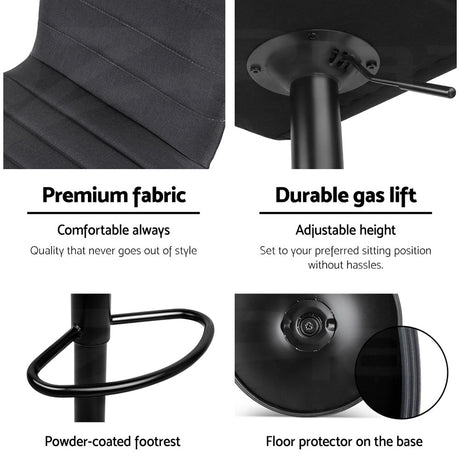 Artiss Set of 2 Faux Linen Bar Stools - Black