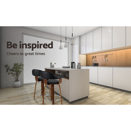 Artiss Set of 2 Bar Stools PU Leather Wooden Swivel - Wood, Chrome and Black