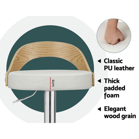 Artiss Set of 2 Bar Stools Kitchen Gas Lift Wooden Stool Metal Barstools White Swivel