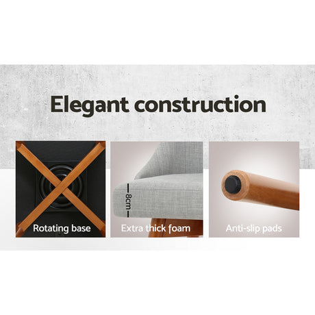 Artiss Set of 4 Fabric Swivel Bar Stools - Grey
