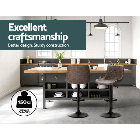 Artiss Set of 2 Bar Stools Kitchen Stool Chairs Metal Barstool Dining Chair Brown Rushal