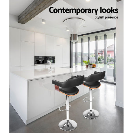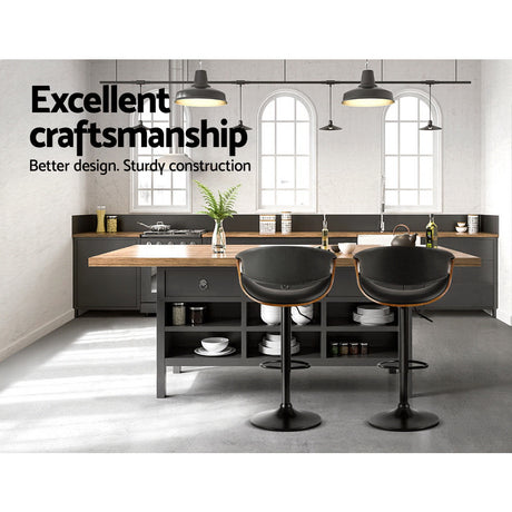 Artiss Set of 2 Bar Stools Kitchen Wooden Gas Lift Leather Stool Metal Black Barstools
