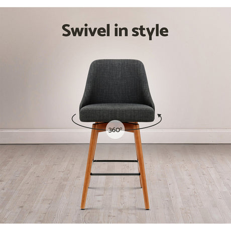 Artiss Set of 2 Wooden Fabric Bar Stools Square Footrest - Charcoal