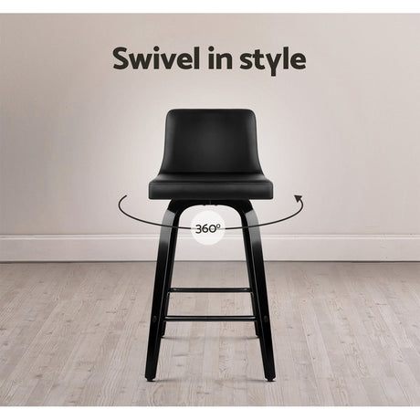 Artiss Set of 2 Wooden PU Leather Bar Stool - Black
