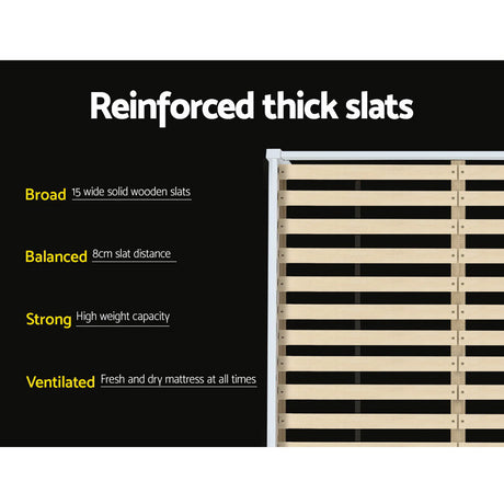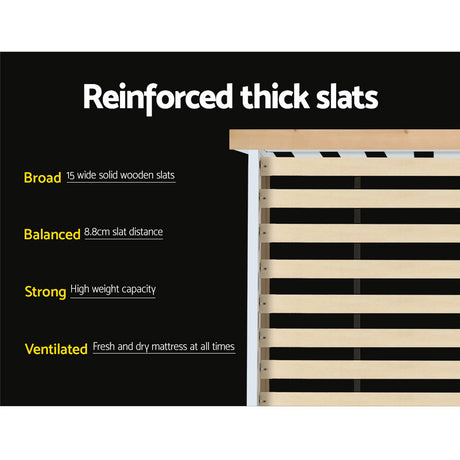 Artiss Wooden Trundle Bed Frame Timber Slat King Single Size White