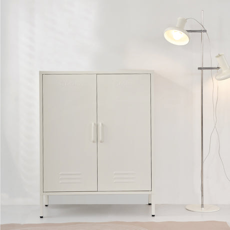 ArtissIn Sweetheart Metal Locker Storage Shelf Shoe Cabinet Buffet Sideboard White