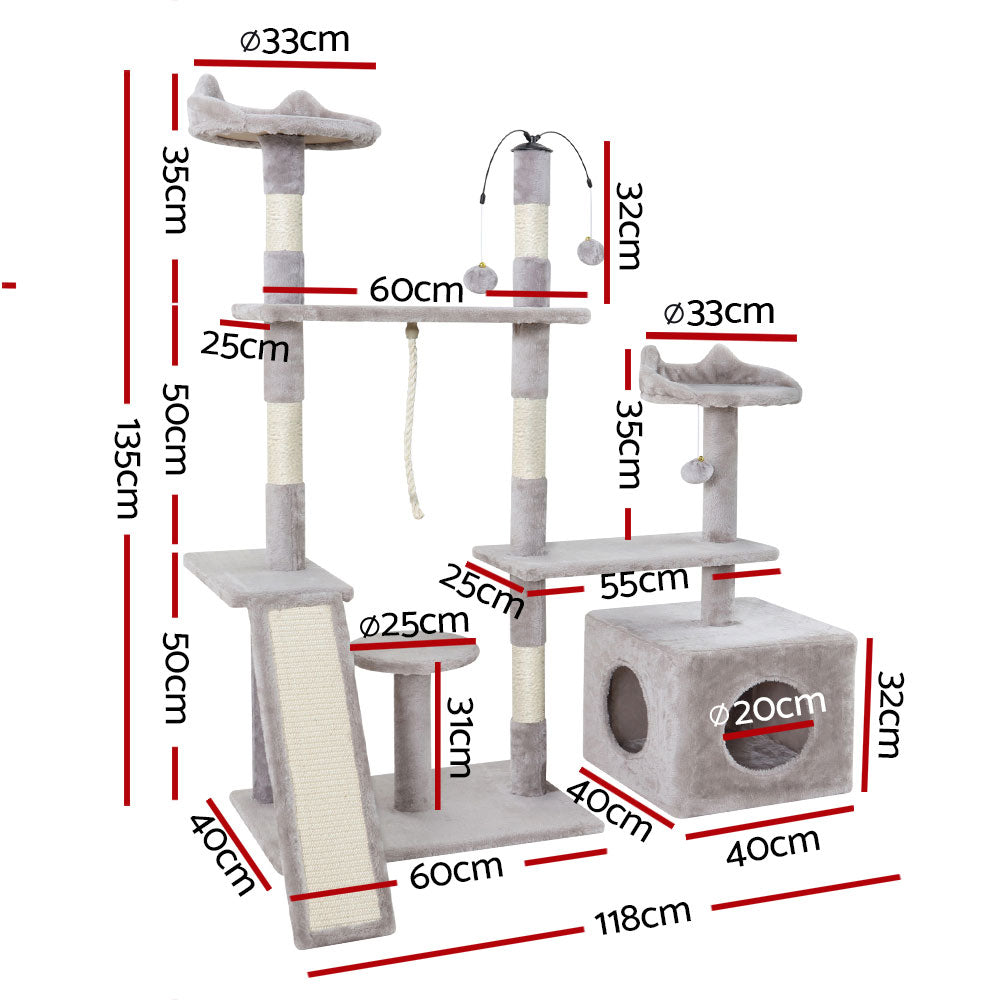 i.Pet Cat Tree Scratching Post Scratcher Tower Condo House Grey 135cm