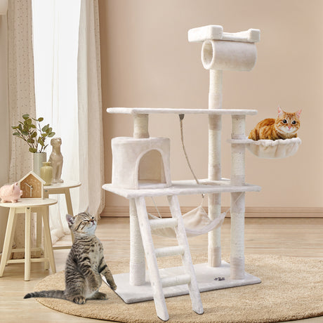 i.Pet Cat Tree 141cm Trees Scratching Post Scratcher Tower Condo House Furniture Wood Beige