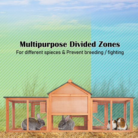 i.Pet Rabbit Hutch Chicken Coop Wooden Cage Pet Hutch 220cm x 52cm x 84cm