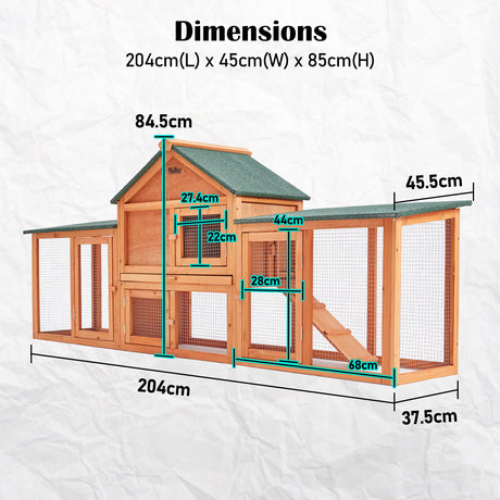 Paw Mate 204 x 45 x 85cm Rabbit Hutch Chicken Coop 2 Storey Large Cage Run