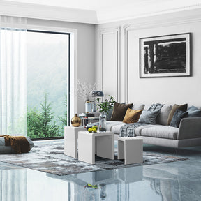 Set of 3 Wooden Coffee Table Gloss White