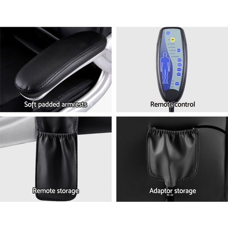 Artiss Electric Massage Office Chairs PU Leather Recliner Computer Gaming Seat Black