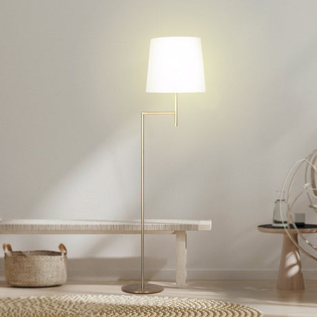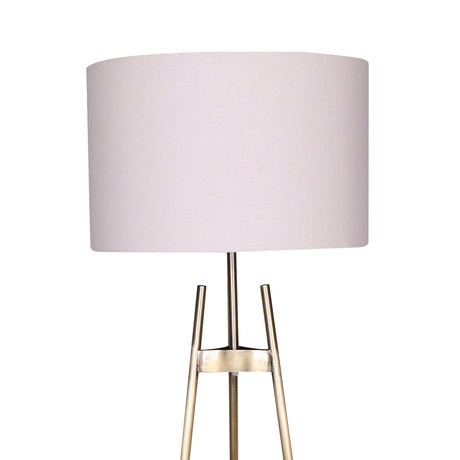 Sarantino Metal Floor Lamp in Antique Brass Finish with Cream Linen Fabric Shade