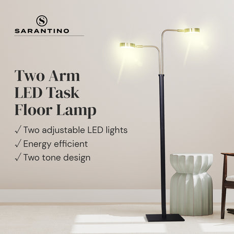 Regular price $158.99Unit priceIn stock (40 units)Sarantino LED Metal Floor Lamp with 2 Lights in Brushed Gold and Black Finish