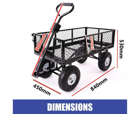 Gardeon Garden Cart Dump 270kg Hand Trailer Trolley Wagon Wheelbarrow Pull 75L