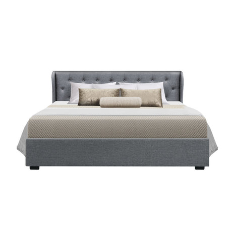 Artiss Issa Bed Frame Fabric Gas Lift Storage - Grey King