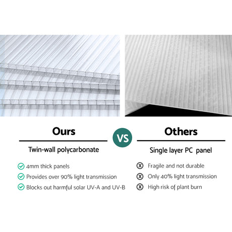 Greenfingers Greenhouse 3x2.5x1.95M Aluminium Polycarbonate Green House Garden Shed