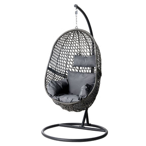 Nothing can make you happier and satisfied than lazily resting in the Gardeon hanging swing chair with stand! It makes a perfect spot for peaceful reading or just unwinding on sunny afternoons. Our outdoor swing chair is a piece of excellent furniture perfect for summer and winter or outdoor and indoor use. Having made from resin wicker with powder-coated steel frame, this hanging outdoor swing chair is durable and sturdy. It has strong hooks and chain for a reliable hold and absolute safety and can hold up to 150kg in weight, ensuring stability and security. The swing chair comes with a removable cushion with polyester zipper cover, which ensures soft comfort and easy cleaning. Flaunting decorative 100% handcrafted design and 360 degrees rotation, this swing chair is great to add a minimalist boho touch to your interior and character to any room. You can place this versatile chair by the poolside, in the backyard, or in any corner of your home. More fun and relaxation that's perfect for a quick snooze. Why wait? Get this hanging swing chair today and have a wonderful time swinging!