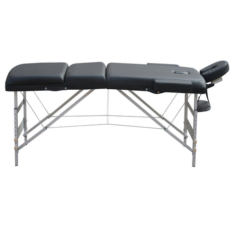 YES4HOMES Black 3 Fold Portable Aluminium Massage Table Massage Bed Beauty Therapy