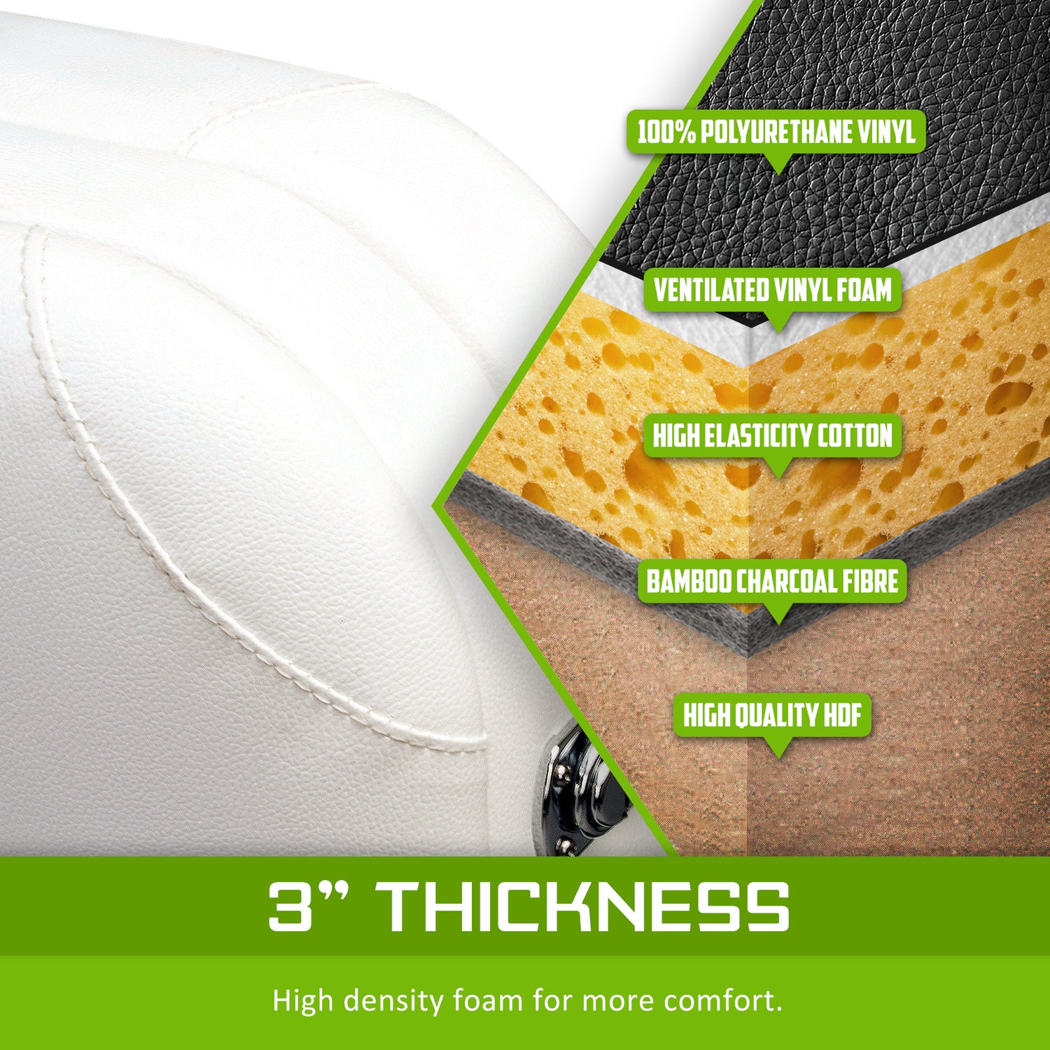 - 3 inch thick high density foam for more comfort design
