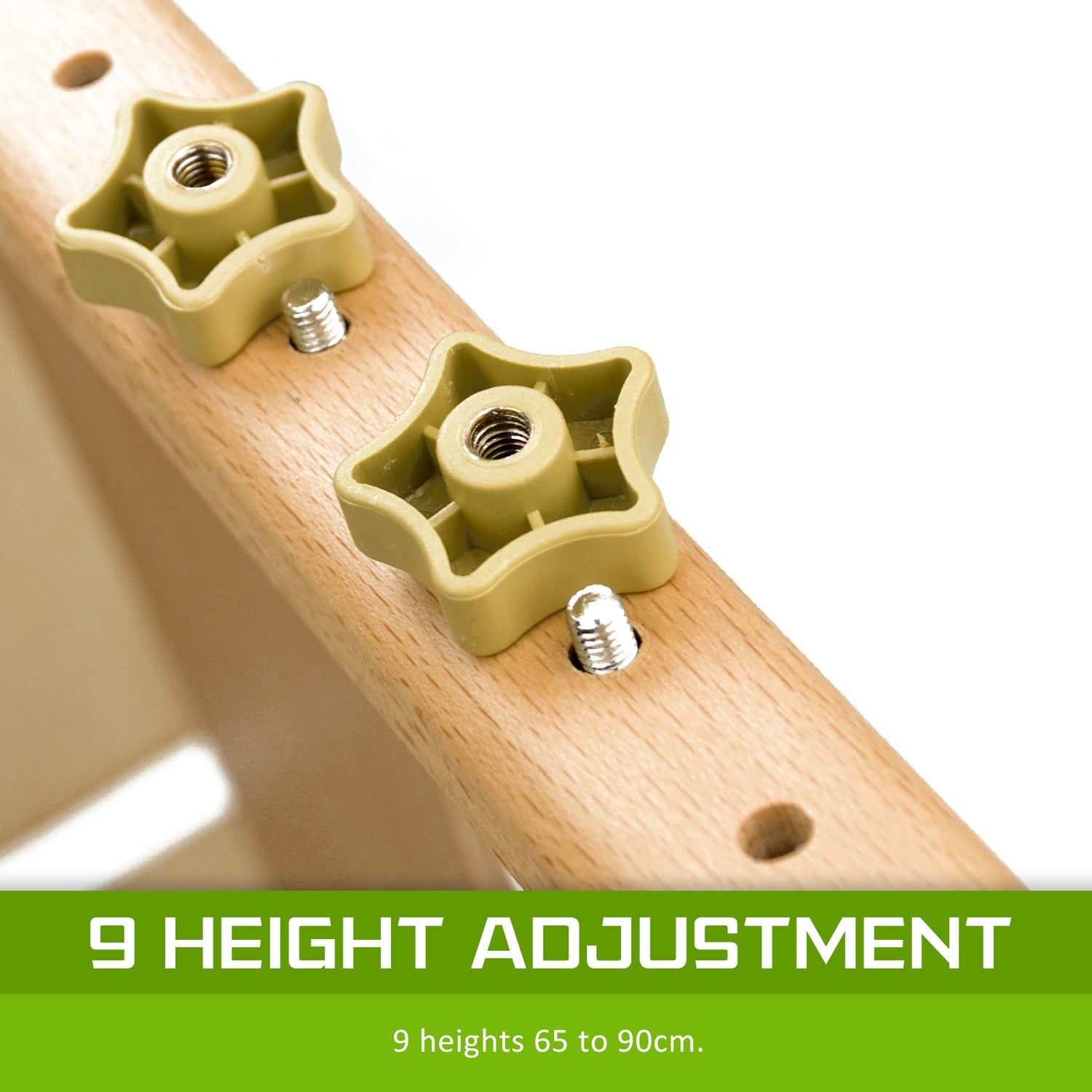 Wooden frame! its sturdy structure allows the table to support up to 300kg. Furthermor, With 9 height adjustments ranging from 63cm - 84cm, this table accommodates user of different heights.