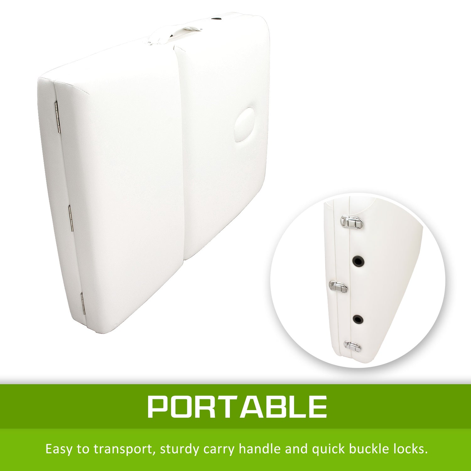 The upholstery is comprised of three-inch thick high density small-cell foam padding and oil & water-proof polyurethane vinyl. The heavy duty aluminium frame is strong and light weight, so if you need to transport it for work or simply need to rearrange your work environment it can be done very easily. In addition, it can be very compact when folded so it is easy to store and keep your storage tidy. It comes with a carry bag to add to your convenience and also to keep it clean when not in use. This massage table is ideal for students, new practitioners, and home users with limited budgets.