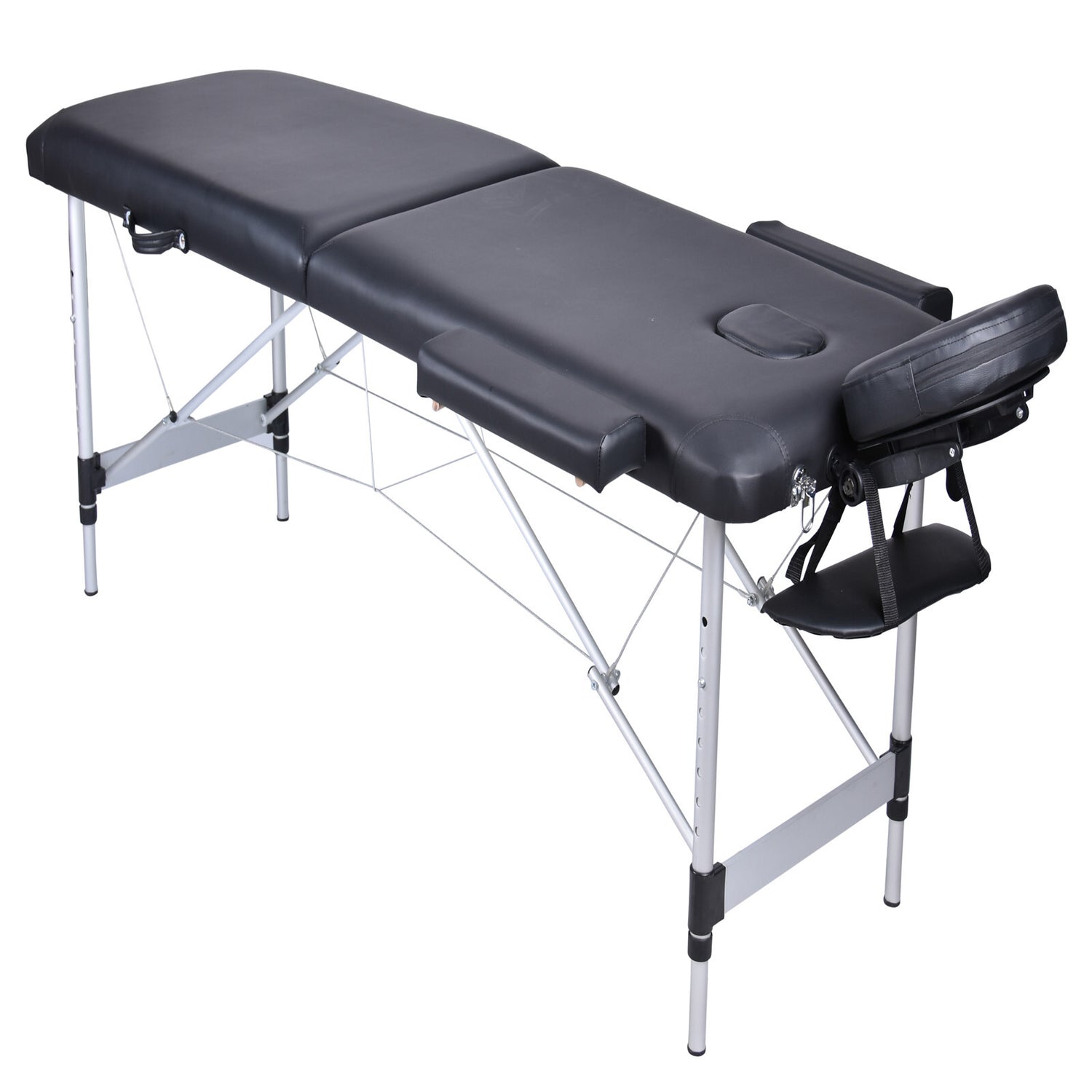 YES4HOMES 2 Fold Portable Aluminium Massage Table Massage Bed Beauty Therapy Black