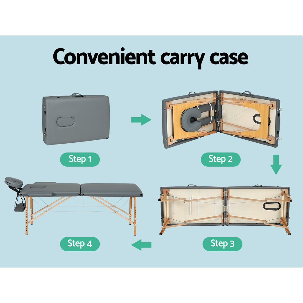 Zenses Massage Table 56CM Width 2Fold Portable Wooden Therapy Beauty Bed Grey
