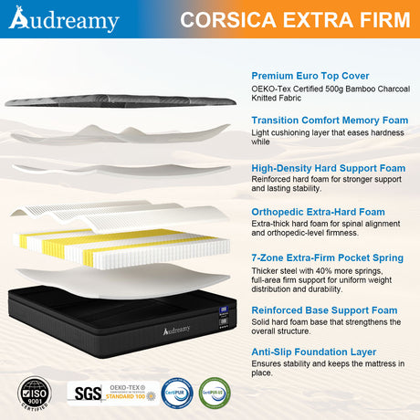 Audreamy Athens Mattress – 34cm Spa-Like Plush Soft Euro Top 7-Zone Pocket Spring 5D Support Medium