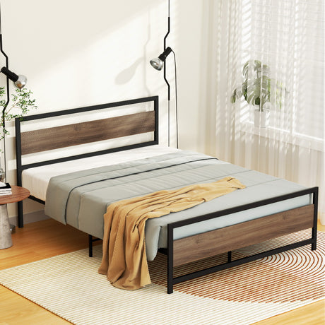 Artiss Bed Frame Metal Bed Base Double Size Platform Wooden Headboard Black DREW