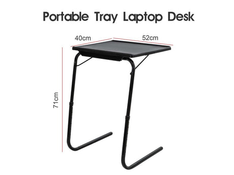 Foldable Table Adjustable Tray Laptop Desk with Removable Cup Holder-Black