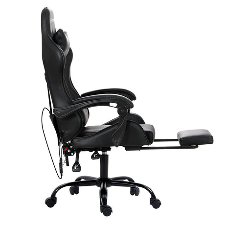 Artiss Massage Gaming Chair 6 Point PU Leather Black