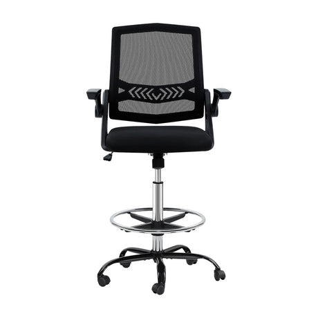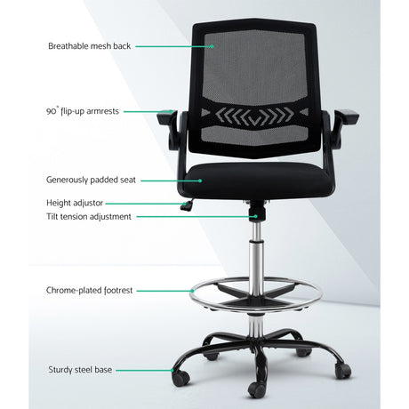 Artiss Office Chair Veer Drafting Stool Mesh Chairs Flip Up Armrest Black