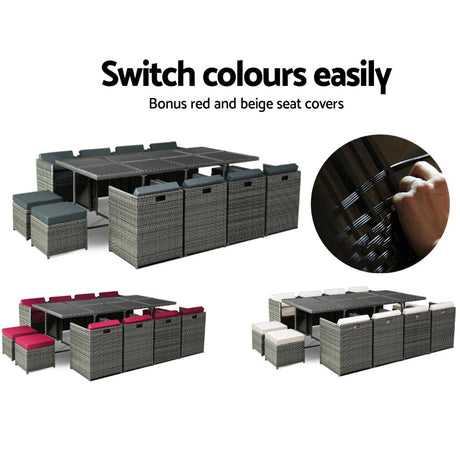 Gardeon 13 PCS Outdoor Dining Set Table Chairs Patio Lounge Setting Furniture