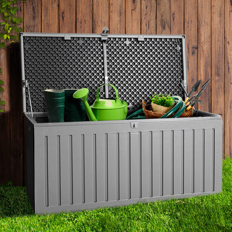 Gardeon Outdoor Storage Box 270L Container Lockable Garden Bench Tool Shed Grey