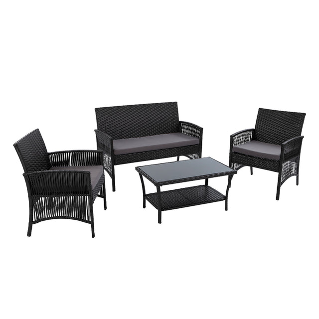 Gardeon 4 PCS Outdoor Furniture Lounge Setting Wicker Dining Set Black
