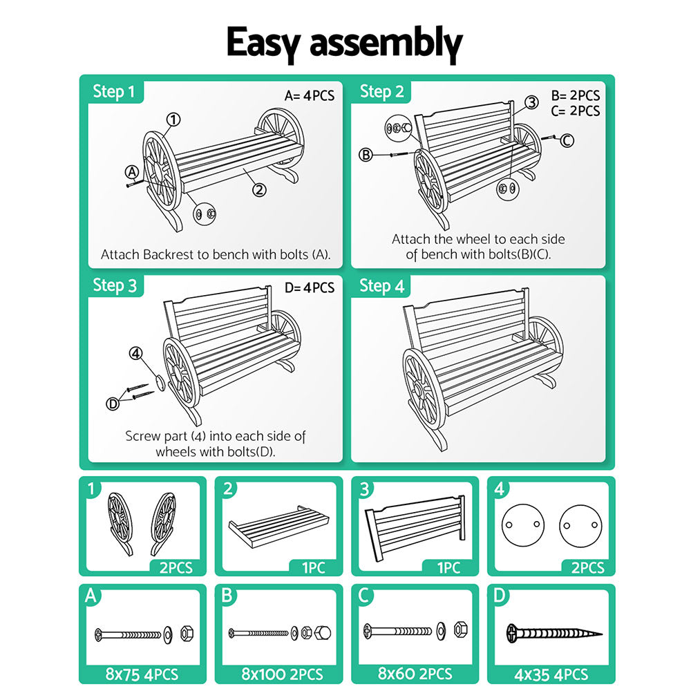 Time to have a seat on the wild wild west side. That is right, our Gardeon Wagon Wheel Bench definitely looks the part to spice up your garden and backyard with some country soul. From its period styling to its rustic imported Canadian Fir wood design, the bench is solidly built to seat three people comfortably. The attention to detail is excellent with finely crafted wagon-wheel armrests, a smooth and supportive backrest and exceptional strength and beautiful grains from the Fir wood finish. In fact, the bench can take on a massive weight of up to 300kg. Better still, the Fir wood is weather-resistant, UV-resistant and blessed with a natural resistance to rot and pests. Everything you want in a durable and longlasting garden bench under the great Australian sun and rain. Overall, the bench is given a burnt wood appearance that not only enhances its appearance but also gives it a worn-in style that exudes lots of historic vibes. Our Wagon Wheel Bench should be riding high on your shortlist of garden bench purchase, so rein one in today.